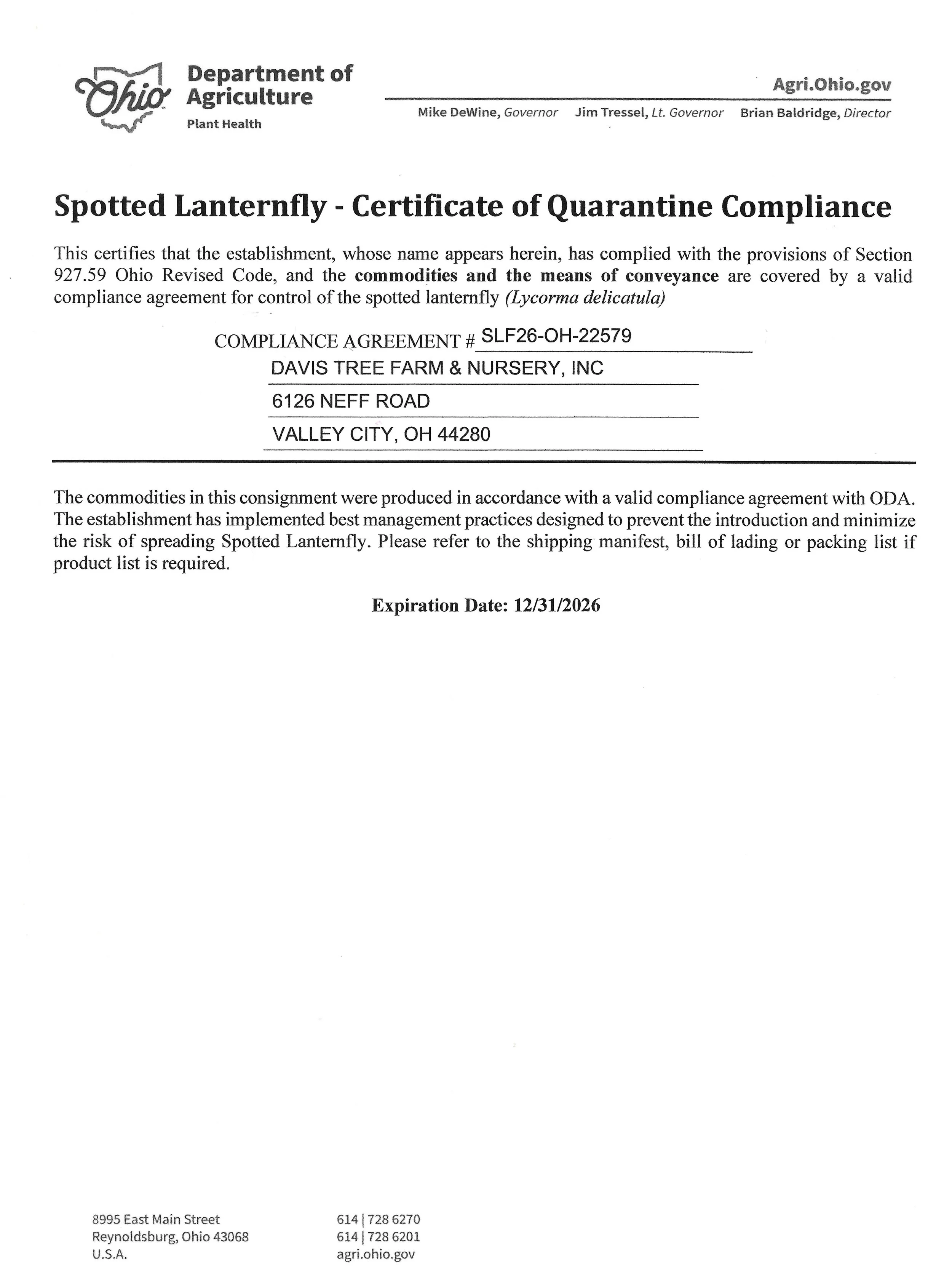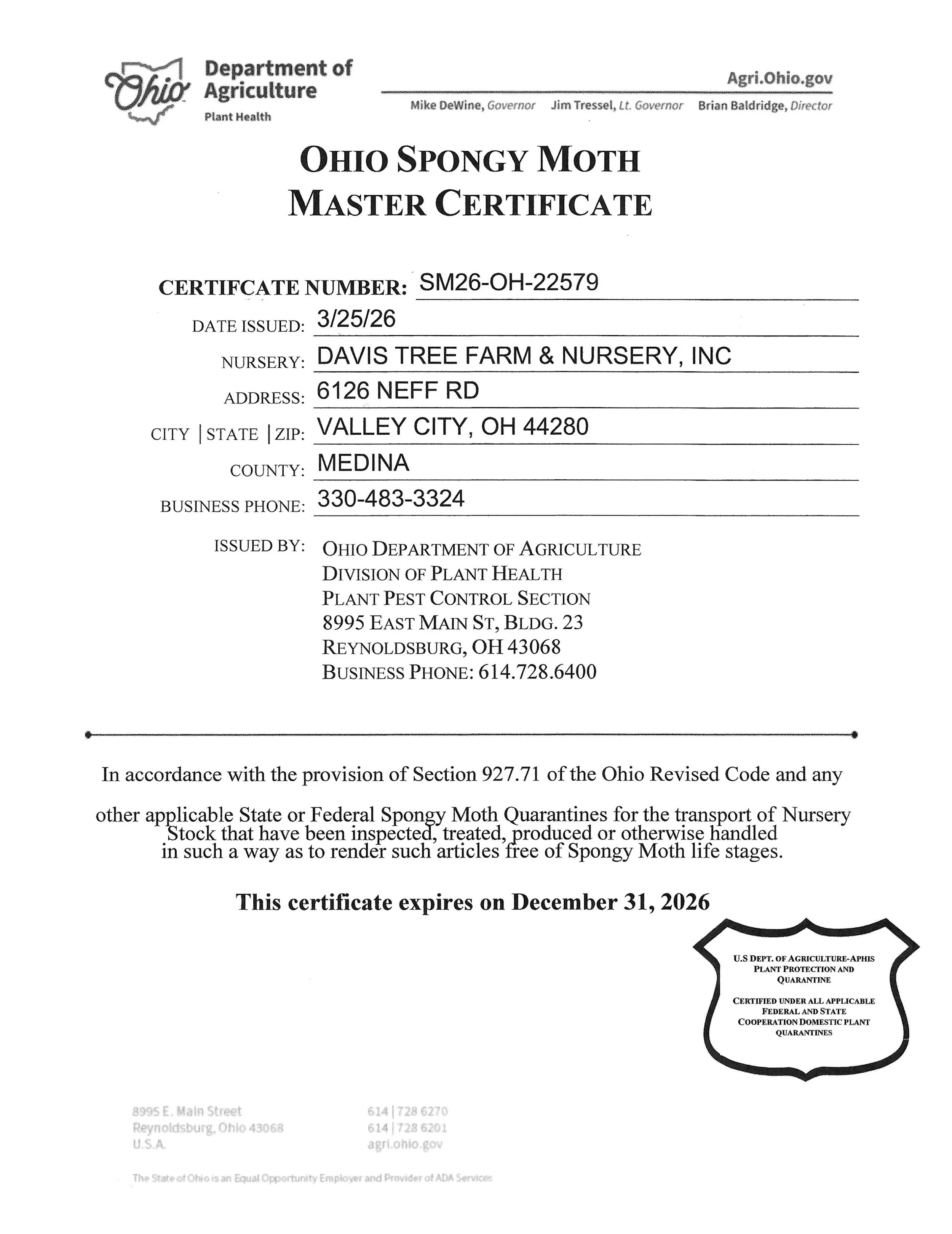 An inspection certificate is required for anyone who produces & sells winter-hardy trees, shrubs, perennials or other nursery stock.